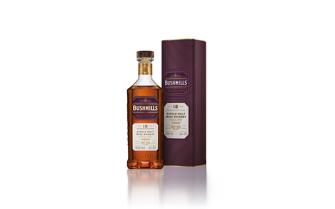 Bushmills 18 Year Old Single Malt je prémiová irská whiskey, která je součástí exkluzivní řady „World Wood“. Vyznačuje se unikátním procesem zrání ve třech typech sudů, který jí dodává hluboký a komplexní ovocný profil. Whiskey zraje minimálně 17 let v kombinaci sudů po bourbonu a sherry Oloroso. Závěrečných 12 měsíců dozrává ve vzácných sudech po portském víně Colheita z údolí Douro v Portugalsku.