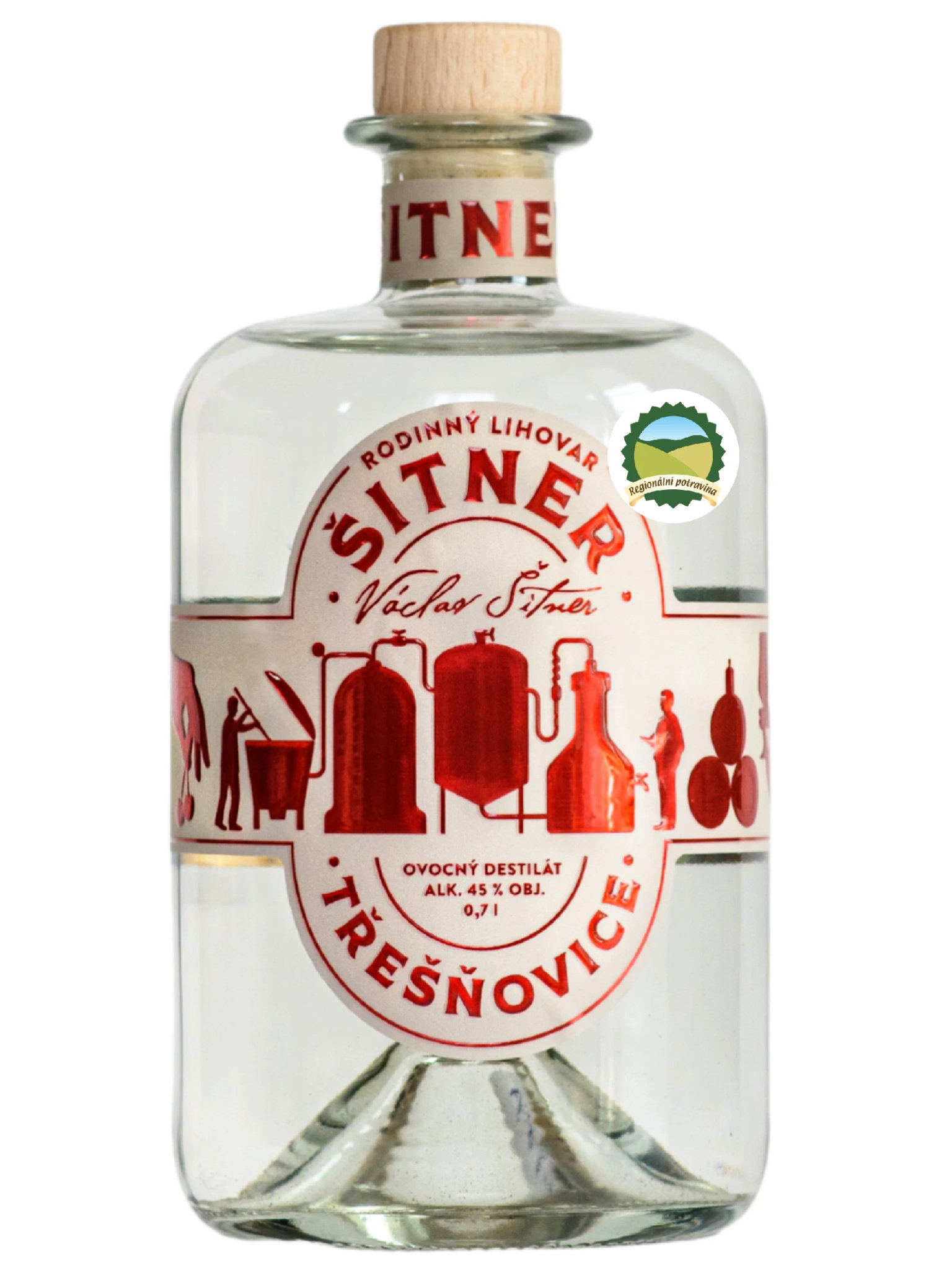 ALTERNATIVA ZDE >> Třešňovice Šitner má sladkou vůně vyzrálých třešní, je lahodná až hladká chuť což je charakteristické pro třešňovici z řady Šitner destiláty. Z třešní převážně z Jižních Čech vyrobili kvas, který prošel trojstupňovou destilací a zrál v nerezových tancích. Za touto novou kvalitní pálenkou z Blatné stojí mistr destilatér Václav Šitner se svými dcerami.